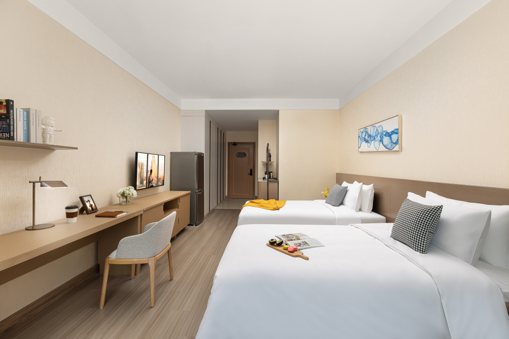 The residence is equipped with high-speed Wi-Fi, a meeting room, and a function room to provide comprehensive business support for our guests. The restaurant with a panoramic view, serves fresh and varied breakfast options. Moreover, we are dedicated to fostering a vibrant and energetic lifestyle, offering residents the opportunity to engage in physical activities and enjoy the thrill of sports in our well-equipped gymnasium, yoga room, and table tennis room.